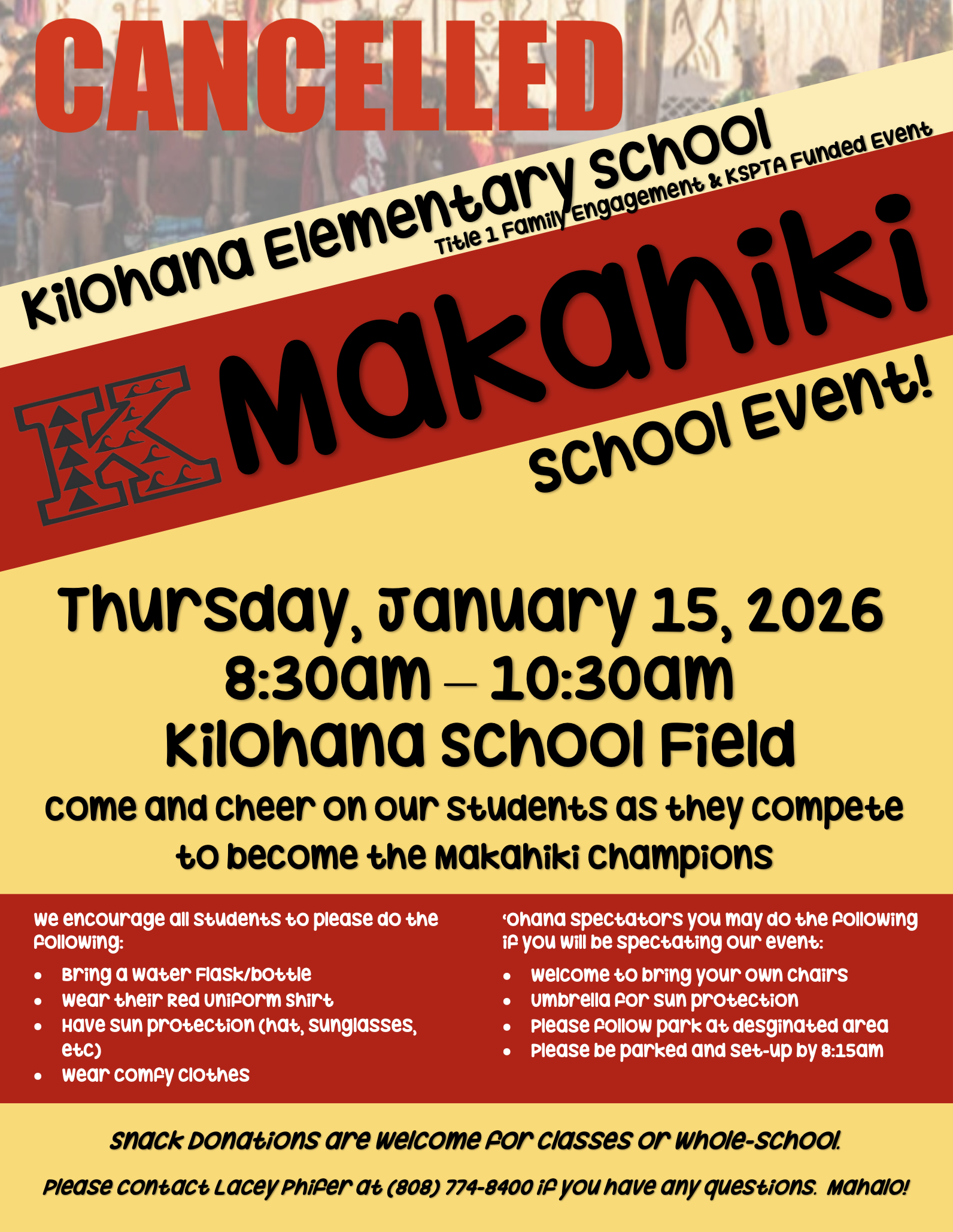 KILOHANA MAKAHIKI SCHOOL EVENT CANCELLED